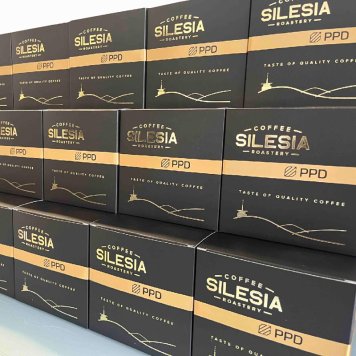 1. Černý sáček SILESIA Coffee Roastery s etiketou s logem vaší firmy (grafický návrh firemní etikety vám vždy pošleme ke schválení)